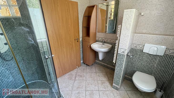 Az emeleti szinten 3 szeparált hálószoba, egy káddal és zuhanyzóval is felszerelt fürdőszoba, közlekedő, 2 terasz és egy franciaerkély lett kialakítva.