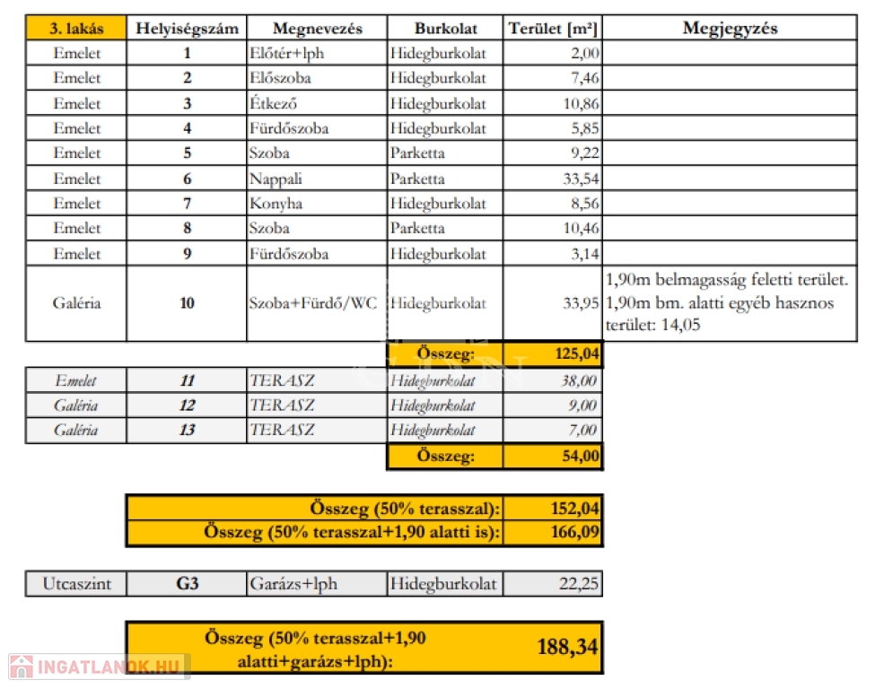 - Teraszok: 54 m2,