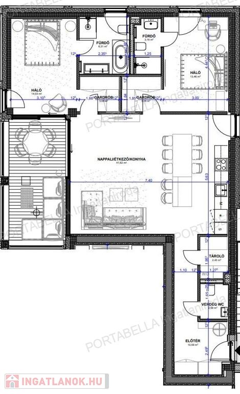 * Legújabb nemzetközi trendeknek megfelelő belsőépítészet