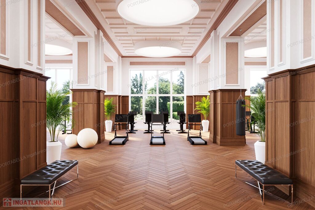 a földszint területe az összes épület lakói számára közös használatú helyiségként szolgál majd. Itt a recepción kívül, egy nagyszerű, kandallós ’country club’ szalon, egy klubszoba és edzőterem kerül kialakításra.