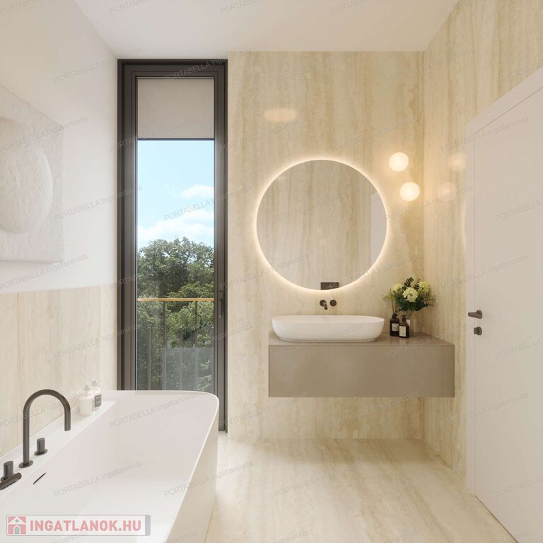 Padlófűtés biztosított a fürdőszobákban, opcionálisan további területekkel.