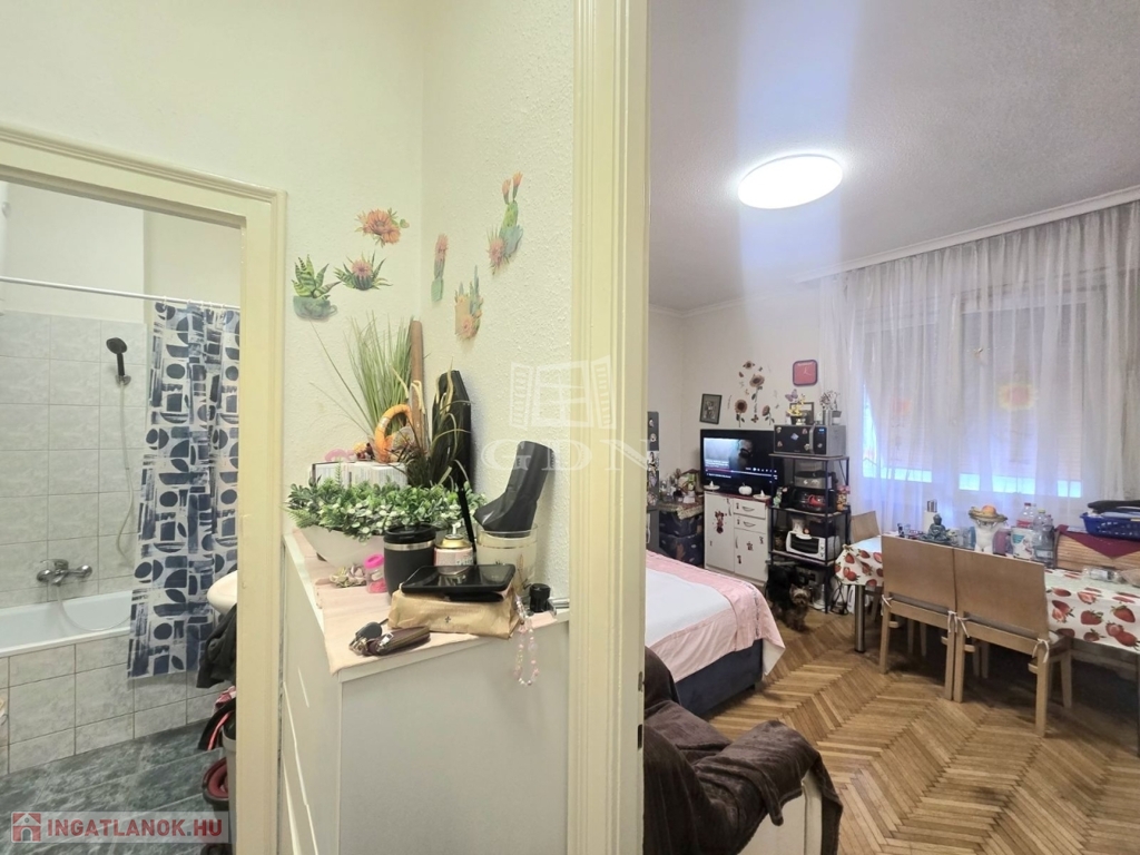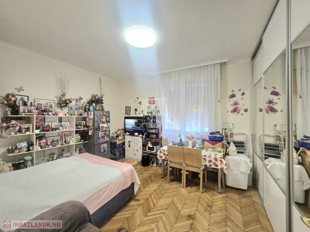 A nappali-háló tágas és világos, utcai kilátással, a házközponti fűtés pedig lapradiátorokon keresztül biztosítja a kellemes meleget a téli hónapokban.