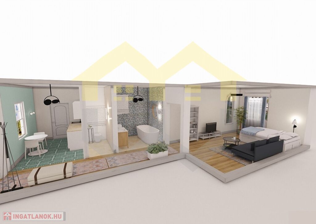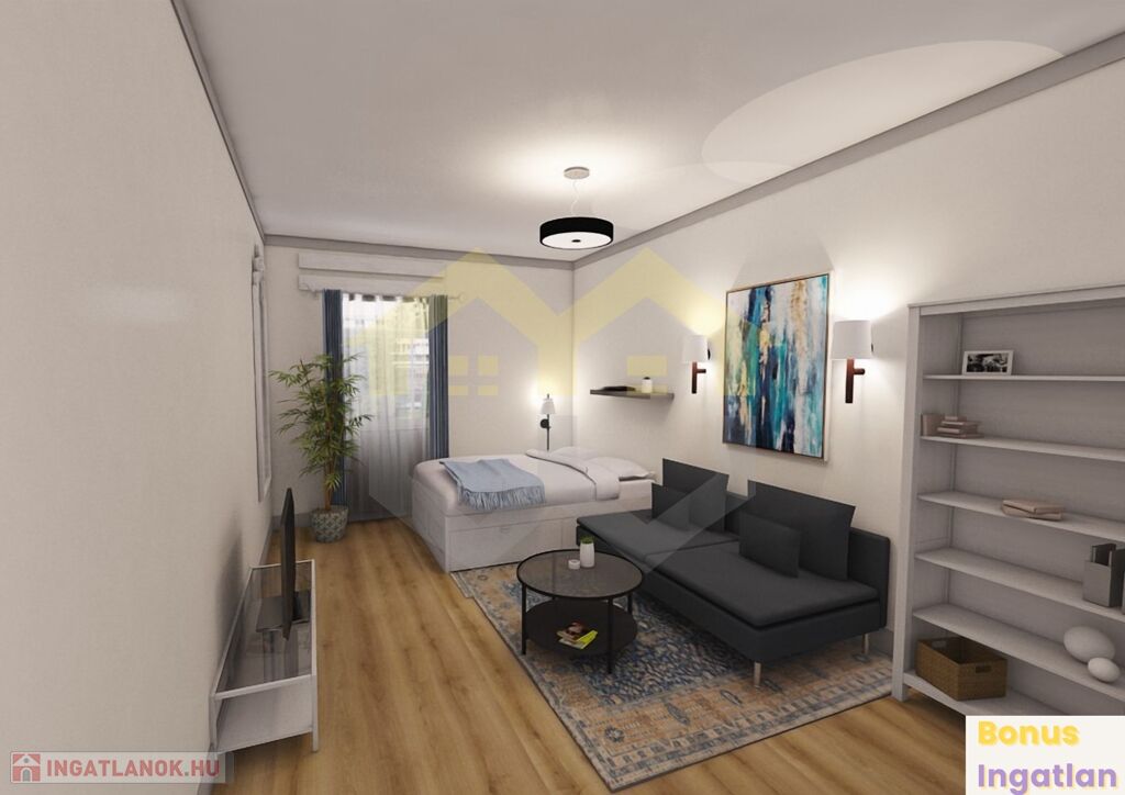 A lakás felújítást igényel. A legtöbb tulajdonos a hasonló elosztású lakást átépíti amerikai konyhás nappali (20 nm) + egy szobás ( 8 nm) otthonná. Átalakítási terv elérhető a galériában.