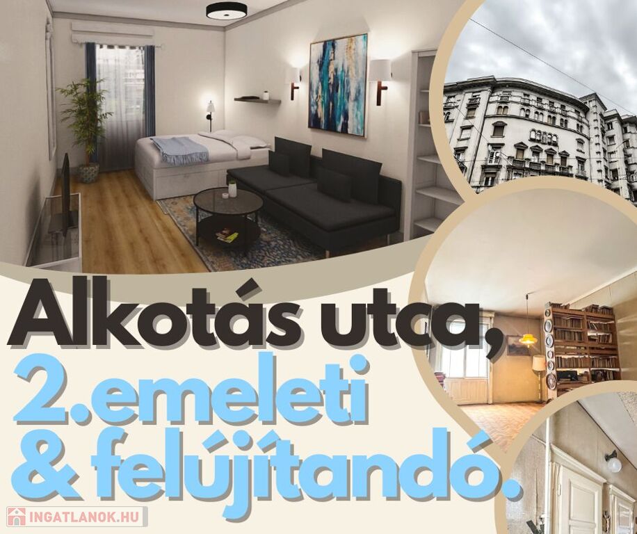 Néhány lépésre a Déli pályaudvartól, az Alkotás utcában, reneszánsz stílusban épült, dupla liftes ház második emeleti, lakása eladó.