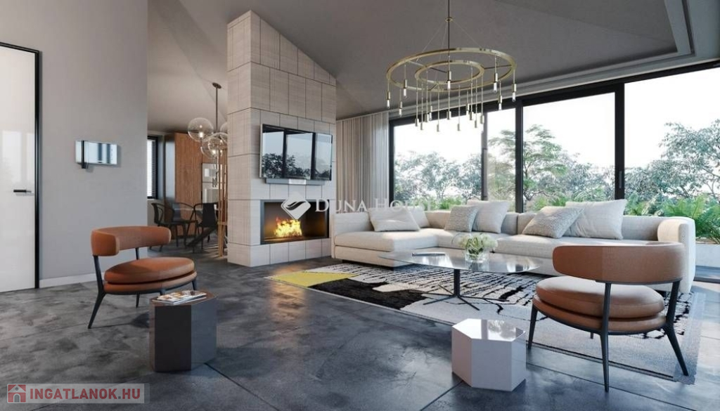 Megújuló energia, fűtő-hűtő rendszer, felső kategóriás anyaghasználat, nagy teraszok, élhető zöld terület.