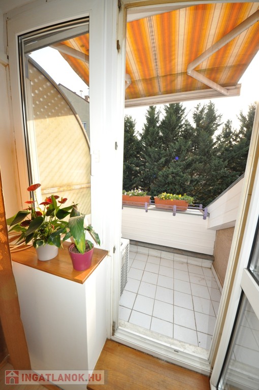 A lakás magas emeleti elhelyezkedésének és kertre néző tájolásának köszönhetően csendes, világos és szép kilátás nyílik a Németvölgy felé, Az erkély intim hangulatú, a zöld kertre néz, napos.