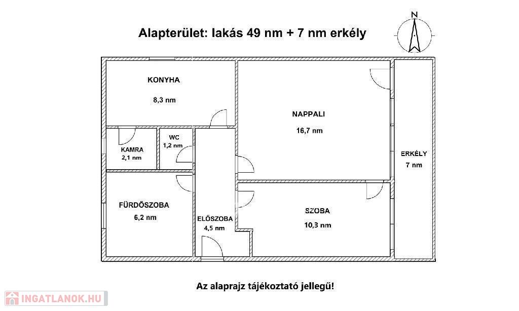 Nappali és egy félszoba, előszoba, fürdőszoba, külön WC, valamint konyha és kamra áll rendelkezésre a kiváló elrendezésű lakásban.