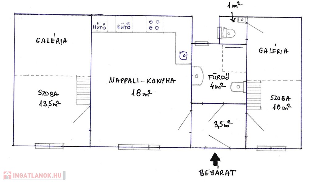 A 3,8 m -es belmagasságnak köszönhetően két galéria is kialakításra került,