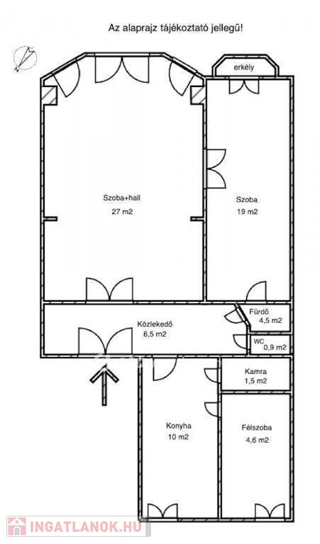 Az utcára néző szobák és az erkély délkeleti fekvésűek. A északnyugati tájolású félszoba és a konyha egy rendezett belső udvarra néznek.