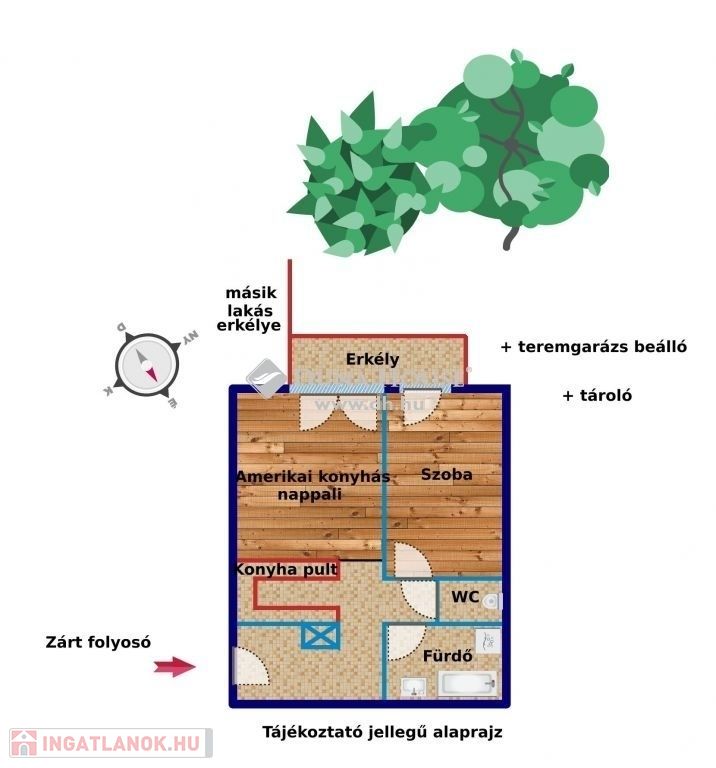 A lakásnak mindkét szobából megközelíthető erkélye van, napfényes, világos szobák, jó elosztás jellemzi, beépített konyhabútor és gépek az árban benne vannak.