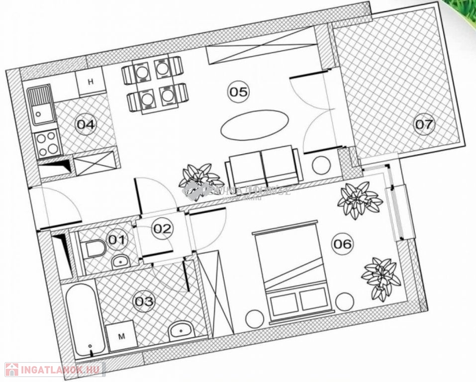 - Teljesen bútorozott és gépesített(beépített konyhabútor, hűtő, fagyasztó, mosogatógép, indukciós főzőlap, páraelszívó, mosógép)
