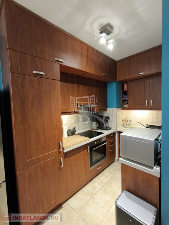 Gépesített konyha beépített sütővel és mosogatógéppel.