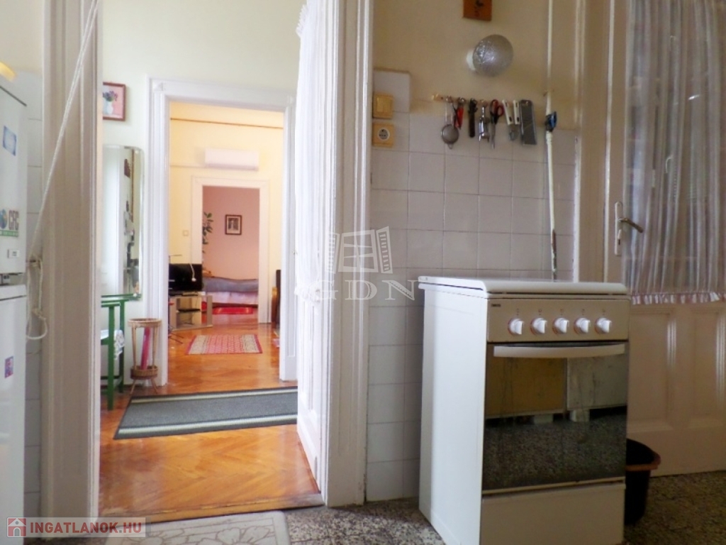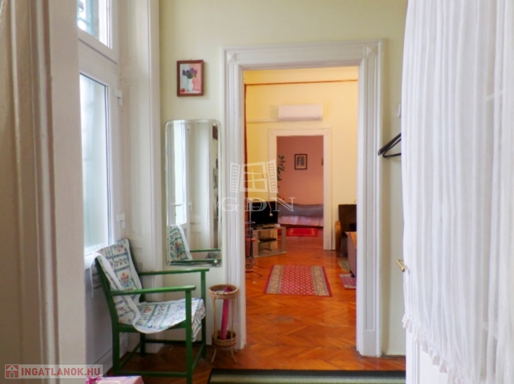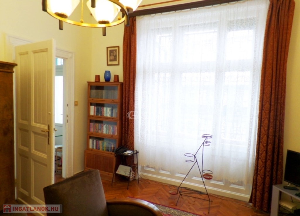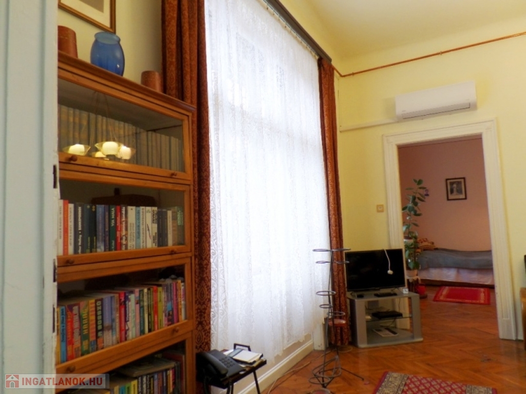 A belső UDVARI kilátású ingatlan egy RENDEZETT, liftes, téglaépítésű társasház, 4. emeletén helyezkedik el. A karbantartott lakás rendkívül tágas, VILÁGOS, jó állapotú, két éve volt tisztasági festés. Az ingatlan KLASSZIKUS polgári lakás kialakítású, belmagassága 3,4 méter. Fűtést cserépkályhába szerelt HÉRA működteti, meleg víz ellátását villanybojler biztosítja. HŰTŐ-FŰTŐ klíma is felszerelésre került. A padló fa parkettás, vizes helyiségek, konyha kerámia burkolatú. Külső és belső nyílászárók fából készültek, jó állapotúak. A műanyag BIZTONSÁGI bejárati ajtó hőszigetelt. KÖZÖS költség: 27.000,- Ft, amely a VÍZDÍJAT magába foglalja.