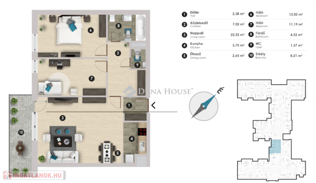 | Fűtés jellege: | Házközponti (egyedi mérővel) |