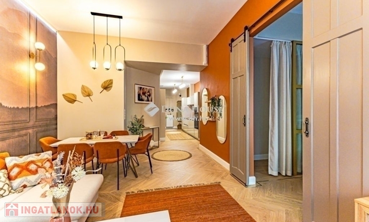 . A lakás tulajdoni lap szerint 92 nm melyet két lakássá bontottak, ennek eredménye, egy közel 75 nm, és egy 18 nm alapterületű lakás került kialakításra. Jelen hirdetésben szereplő 75 nm lakrészt kínáljuk eladásra.A lakást, a mostani tulajdonos az alapokig visszabontotta, és minden elemében megújította. Ennek köszönhetően, két hálószoba és tágas nappali került kialakításra.A terekre jellemző, hogy a mind a fő mind a második hálószoba is közel 15 nm; a fő hálószobából leválasztottak egy Gardrobe helyiséget. A nappali tágas világos, magában foglalja az étkezőt is, a konyha a tágas közlekedő részen kapott helyet, ahonnan a Fürdő és az udvari tájolású hálószoba is megközelíthető.A felújítás során magas minőségű anyagok kerültek beépítésre, mind a szaniterek, mind a nyílászárók tükrözik azt az igényességet, amelyet a Home Staging során kiválasztott bútorok és berendezési tárgyak egészítenek ki és teszik harmonikus otthonná. A lakás teljes bútorzattal, és berendezési tárgyakkal együtt megvásárolható.A házban a rövidtávú kiadást mostani tudásunk szerint a ház nem engedélyezi, a kisebbik lakrész jelen pillanatban is ki van adva hosszú távra. Igény esetén az is megvásárolható, külön megállapodás alapján.Jöjjön el nézze meg.