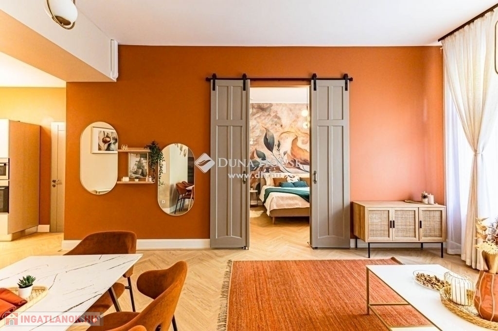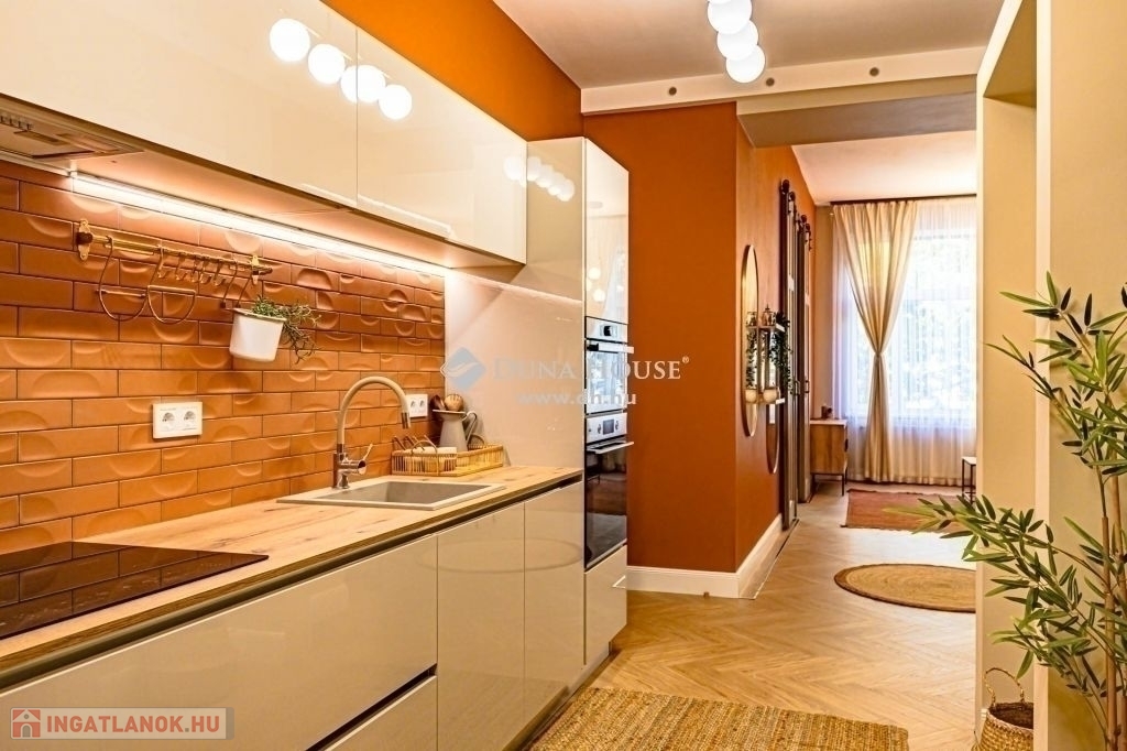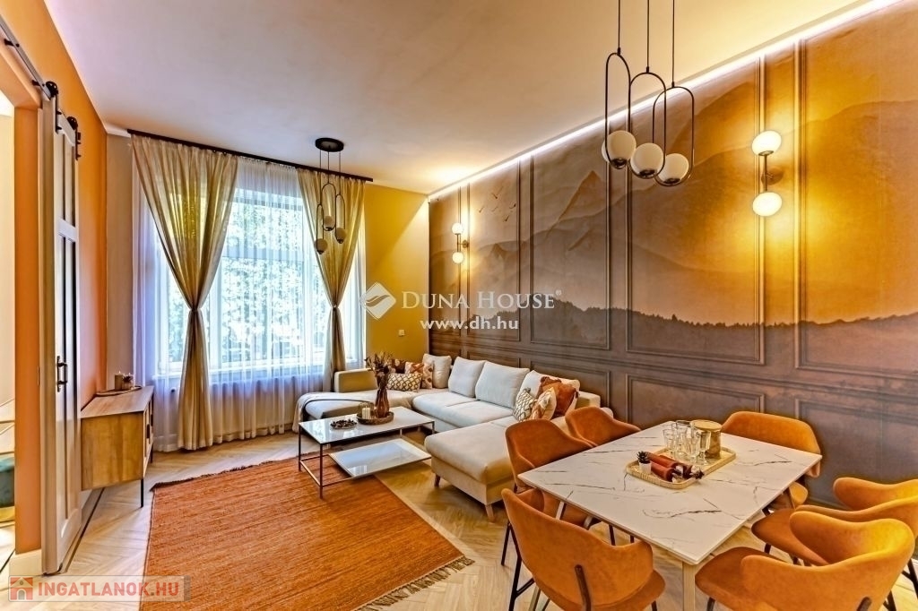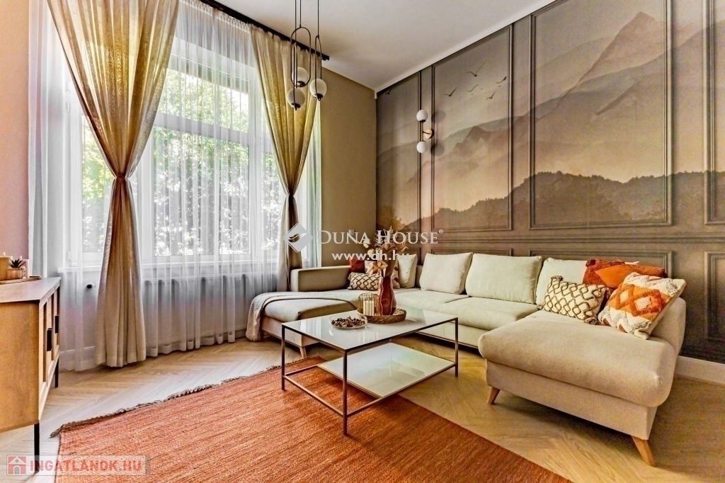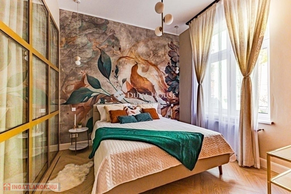 XIII. kerület Újlipótvárosi részén, a pezsgő Belváros szomszédságában pár perc sétára Westendtől, eladó egy nagypolgári lakás. A lakás tulajdoni lap szerint 92 nm melyet két lakássá bontottak, ennek eredmény keppen, egy közel 75 nm, és egy 18 nm alapterületű lakás került kialakításra. Jelen hirdetésben szereplő 75 nm lakrészt kínáljuk eladásra.A lakást, a mostani tulajdonos az alapokig visszabontotta, és minden elemében megújította. Ennek köszönhetően, két hálószoba és tágas nappali került kialakításra.A terekre jellemző, hogy a mind a fő mind a második hálószoba is közel 15 nm; a fő hálószobából leválasztottak egy Gardrobe helyiséget. A nappali tágas világos, magában foglalja az étkezőt is, a konyha a tágas közlekedő részen kapott helyet, ahonnan a Fürdő és az udvari tájolású hálószoba is megközelíthető.A felújítás során magas minőségű anyagok kerültek beépítésre, mind a szaniterek, mind a nyílászárók tükrözik azt az igényességet, amelyet a Home Staging során kiválasztott bútorok és berendezési tárgyak egészítenek ki és teszik harmonikus otthonná. A lakás teljes bútorzattal, és berendezési tárgyakkal együtt megvásárolható.A házban a rövidtávú kiadást mostani tudásunk szerint a ház nem engedélyezi, a kisebbik lakrész jelen pillanatban is ki van adva hosszú távra. Igény esetén az is megvásárolható, külön megállapodás alapján.Jöjjön el nézze meg.