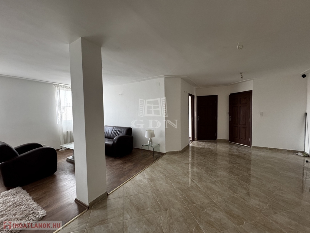 A lakás a legfelső emelet található. Használható két kisebb külön lakásként, vagy akár egyben is. Egyben használva két fürdőszoba, két tágas erkély, 4 szoba, óriási amerikai konyhás nappali, és egy különleges, panorámás 25 nm-es tetőterasz, várja leendő tulajdonosát.