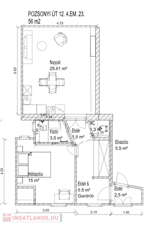 Budapest egyik legkedveltebb részén, a XIII. kerületben, a közkedvelt Pozsonyi úton kínálunk megvételre egy 56 m²-es, exkluzív, 4. emeleti luxuslakást.