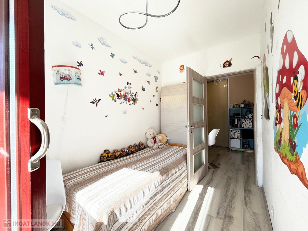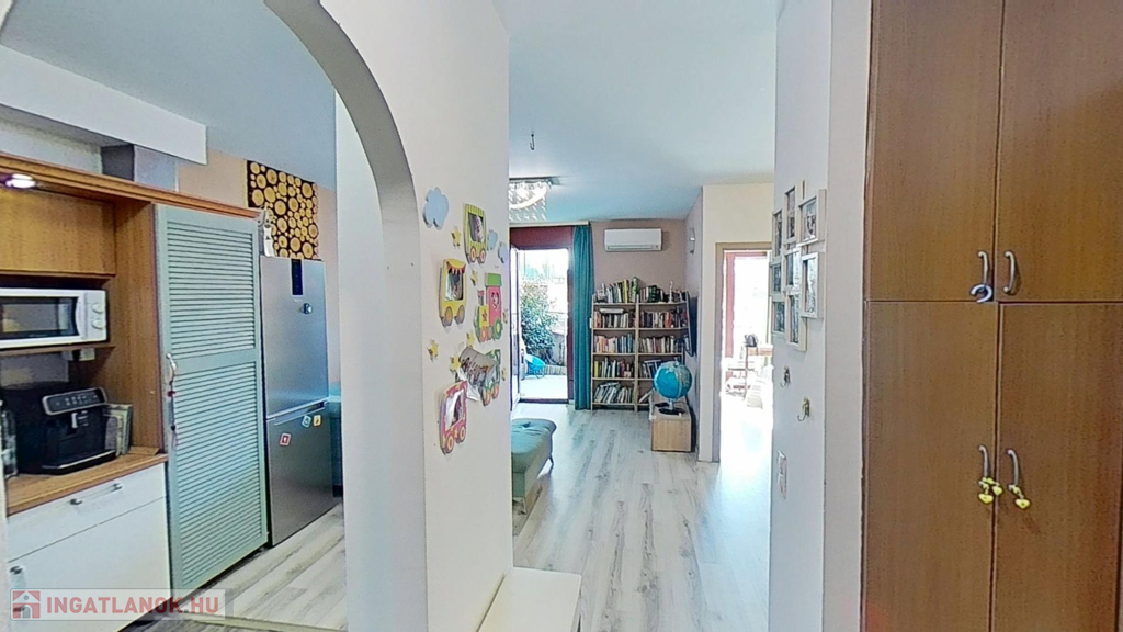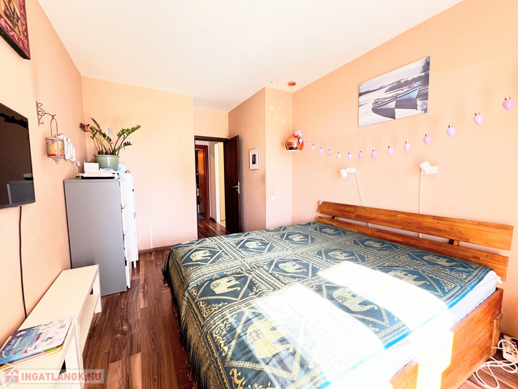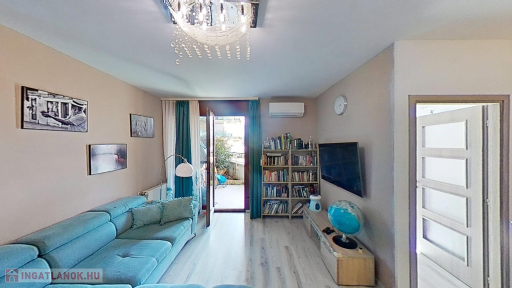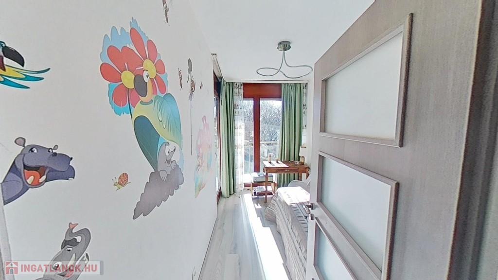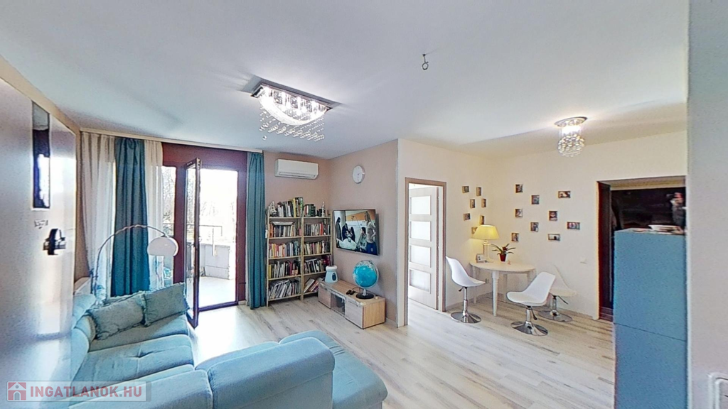 A lakásban a nagy, amerikai konyhás nappalin kívül két hálószoba várja az új tulajdonost. A kisebb háló utólag, a nappali területéből leválasztva lett kialakítva, így lehetőség van annak visszabontására, amivel a nappali még impozánsabb, világosabb lesz.