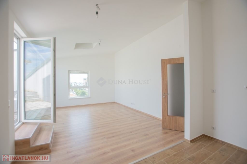 legfelső emeleti lakás 13. kerület Vizafogón, a Duna-part közvetlen közelében. Az ingatlan 71 m²-es, nappali + amerikai konyhás elrendezésű, két külön nyíló szobával rendelkezik. A lakás legnagyobb különlegessége a 36 m²-es, két szintre tagolt, részben térkövezett, részben füvesített terasz, amely ideális pihenésre, vendégfogadásra vagy akár kerti sütögetésekhez. A teraszról kilátás nyílik a Dunára, ami még különlegesebbé teszi az ingatlant. Az otthon világos, tágas, egyedi elrendezésű, nem tipikus alaprajzú lakás, ami valódi ritkaságnak számít az új építésű kínálatban. A lakáshoz két kerti tároló is tartozik, illetve néhány kisebb befejezés az új tulajdonos ízlésére van bízva például a konyhabútor beépítése is még hátravan, így az teljes mértékben személyre szabható. Az ingatlanhoz teremgarázs beállóhely is vásárolható opcionálisan, + 9 millió forintért. Lokáció minden egy karnyújtásnyira! Dagály fürdő, Duna-part, parkosított sétányok pár perc sétára M3 metró, 1-es villamos, tömegközlekedés kiváló A környék újépítésű, rendezett, családbarát, mégis közel a belvároshoz Iskolák, óvodák, boltok, éttermek minden a közelben.Ha egy különleges hangulatú lakásra vágyik nagy terasszal és dunai kilátással Budapest egyik legdinamikusabban fejlődő részén, akkor ezt látni kell!