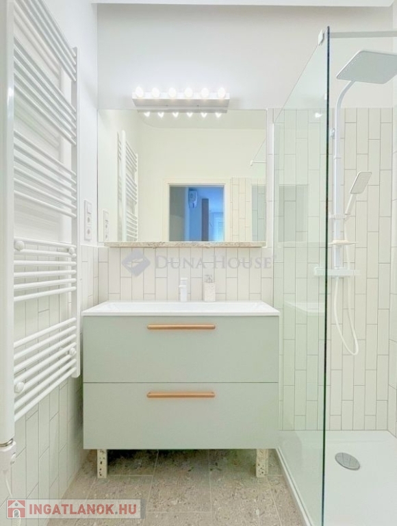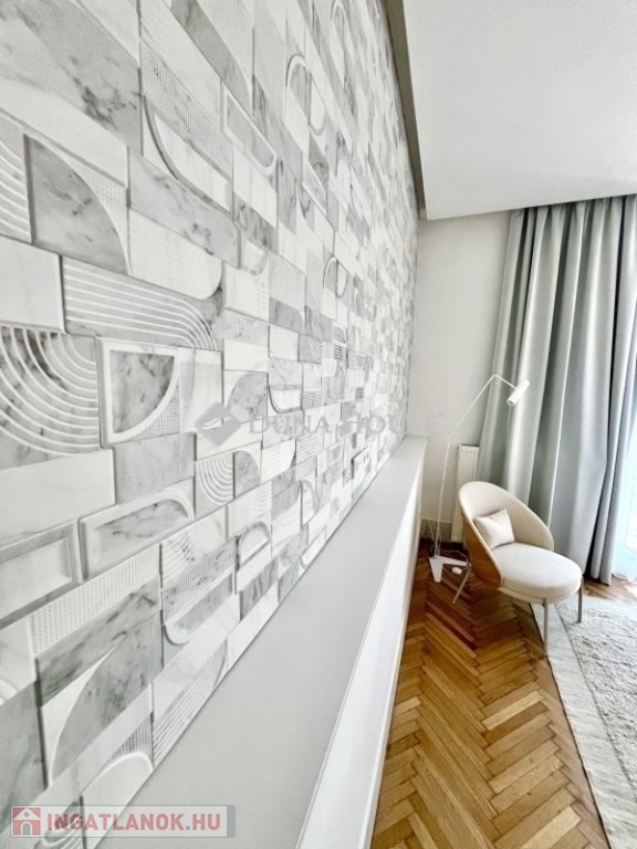 Újlipótvárosban, a Raoul Wallenberg utcában eladó egy 2024-ben teljeskörűen felújított, hatodik emeleti, 67 m²-es lakás 24 m²-es tetőterasszal a Phönix-házban.A lakás belsőépítész tervei alapján került felújításra és átalakításra. A nappali és a konyha-étkező egy tágas légtérben található, dupla erkélyajtóval a teraszra. A hálószobából szintén van kijárat a teraszra. Külön vendég WC helyiség került kialakításra.Az ingatlan főbb jellemzői: 24 m²-es, dél-keleti fekvésű tetőterasz panorámával; légkondicionálás a nappaliban és a hálószobában; egyedi beépített bútorok; BOSCH konyhai gépek (sütő, főzőlap, beépített mikró, mosogatógép, hűtő fagyasztóval); eredeti fa parketta; magas minőségű burkolatok; felújított és szigetelt tetőterasz; redőnyök; biztonsági bejárati ajtó; padlófűtés a hidegburkolatos helyiségekben.A társasház jó anyagi körülmények között van, jelenleg is folyamatban van a teljes elektromos hálózat felújítása. A lépcsőház és a lift korábban felújításra került.Az ár a teljes berendezést, bútorzatot és a gépeket tartalmazza.