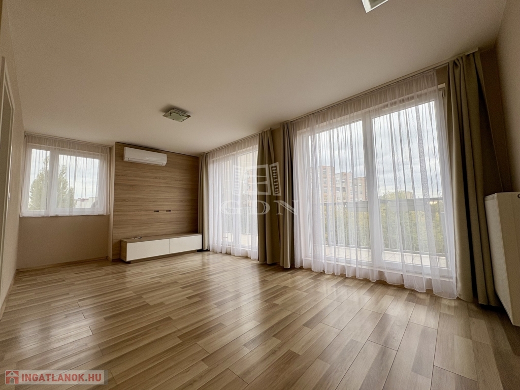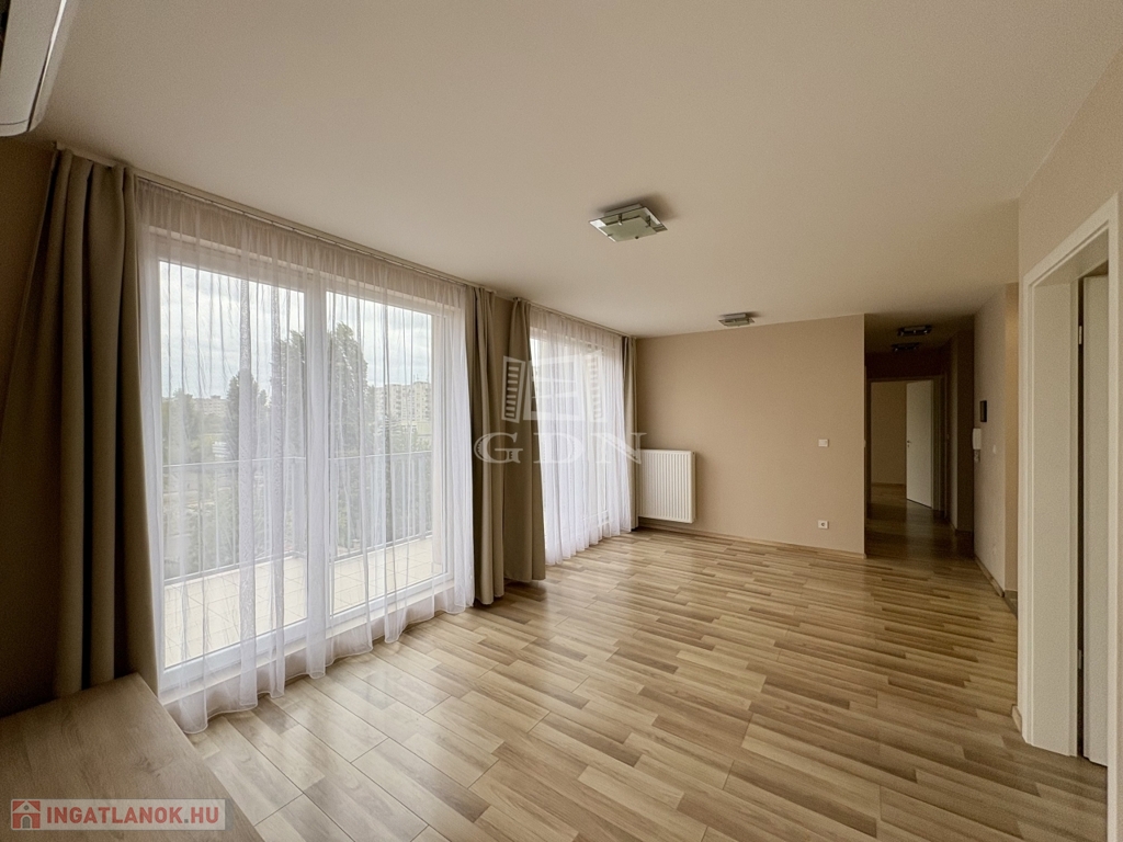 A jól átgondolt alaprajznak köszönhetően az amerikai konyhás nappali mellett három külön nyíló szoba, két fürdőszoba és praktikus tárolóterek szolgálják a kényelmet. A lakás előtt nincs magas beépítés, így a kilátás egy zöld, fás parkra nyílik, a helyiségek pedig egész nap napfényesek és csendesek.