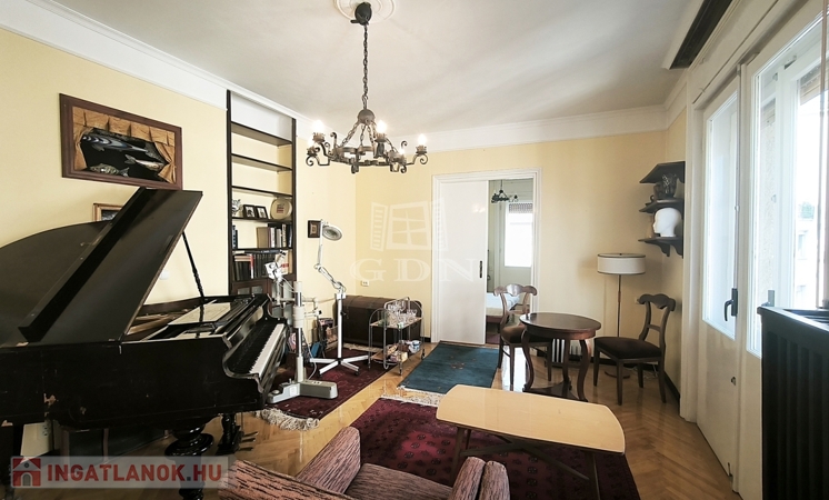 A lakás az épület 5. emeletén található, 3 méteres belmagassággal, világos terekkel és két kisebb erkéllyel, amelyek összesen 4 nm-t tesznek ki.