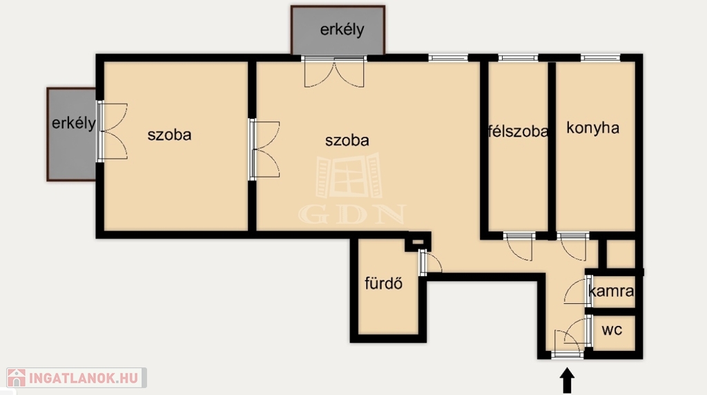 ✔️ 2 szoba + 1 félszoba
