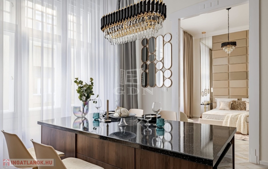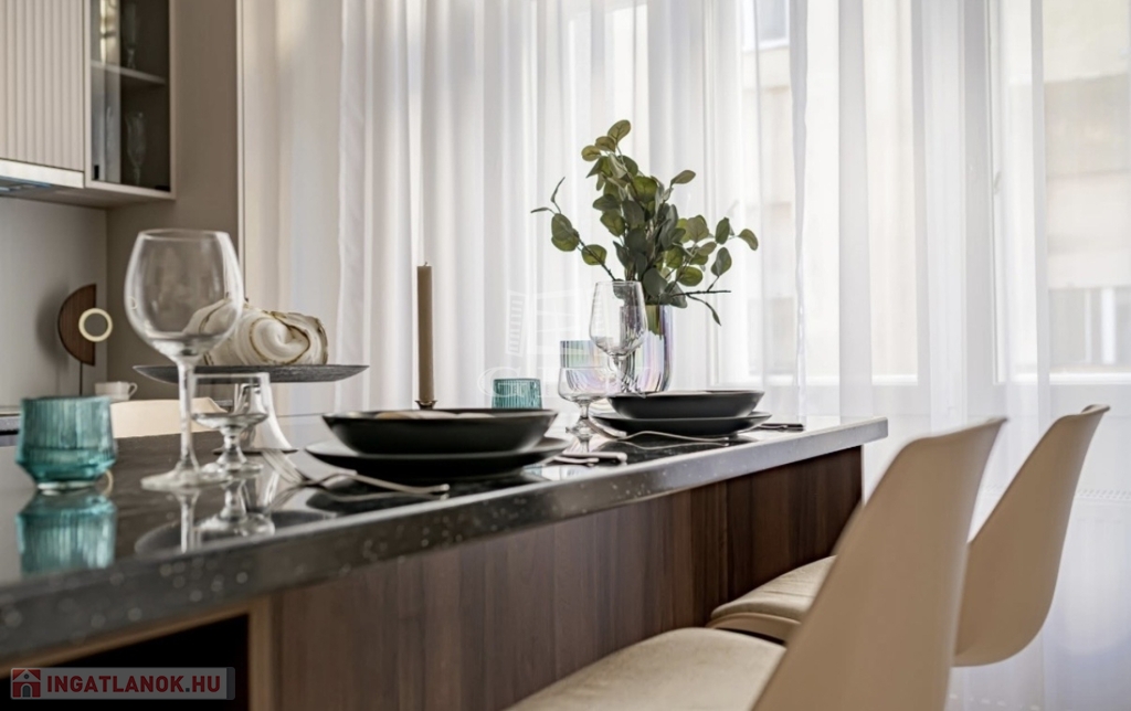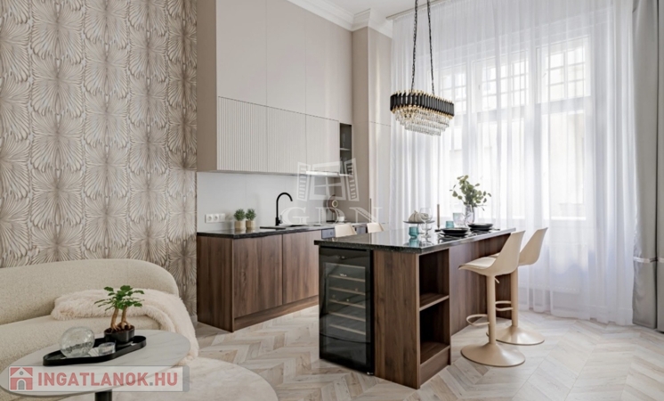 Az ingatlan teljes körű felújításon esett át, ahol minden részletet a minőség, a kifinomult ízlés és a kényelem határoz meg. A tágas nappali, az elegáns hálószoba gardróbszobával, valamint a modern, prémium anyagokból kialakított konyha, fürdőszoba és külön WC harmonikus, letisztult luxusérzetet teremtenek.