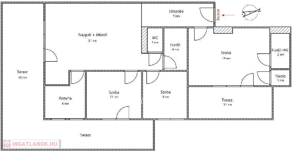 - 91 nm lakótér + 51 nm terasz (egy 40 nm-es és egy 11 nm-es terasz)