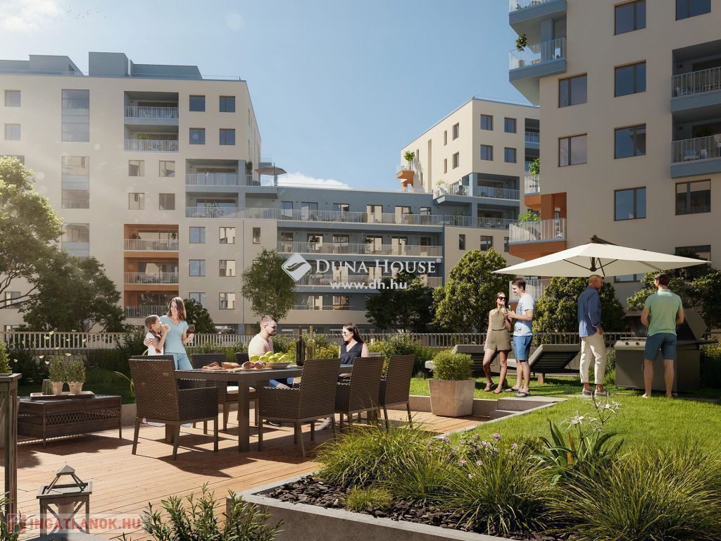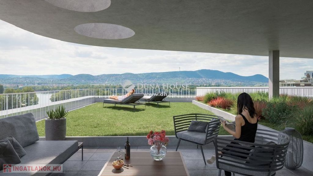 Eladó a 13. kerületben a Marina Parton, a most épülő Duna Terasz Grande-ban egy 87m2+ 113m2-es, 3. emeleti, 4 szobás, NY-i tájolású lakás. Az ingatlan Dunai Panorámás, illetve rendelkezik egy hatalmas terasszal és saját kertel.Okos-otthon megoldások, és mennyezet hűtés-fűtés gondoskodik a gazdaságos üzemeltetésről.A társasházban: Recepció szintű portaszolgálat, és csomagpont található.A közösségi életről pedig a közösségi tetőteraszok (jóga + napozó és grillterasz) a játszóterek és a lakók számára használható sporteszközök gondoskodnak.A környék:A Duna Terasz Grande olyan lenyűgöző adottságokkal rendelkező helyszínre épül, amelyből városszerte kevés létezik. A XIII. kerületi Vizafogó városrész állandóan fejlődő, megújuló, új-építésű házakkal övezett lakóövezete egyedi életmódot biztosít a lakóinak.Képzeld el, hogy a nap végén a lenyűgöző Duna-parton ülve nézed naplementét! A helyszín garantálja, hogy mindennapjaid része lesz a folyó, a sétány és a kikötő.Pár lépésre a Duna part, de számtalan szórakozási és sportolási lehetőséget talál ebben az exkluzív környezetben: Marina sétányon játszóterek, kültéri edzőterem, teniszpálya igényes éttermek, kávézók, élelmiszerbolt, jacht kikötők, kondi termek, medencék, futó pálya.Frekventáltságát tekintve 5 percre a 3-as metró, buszok, kerékpárút szinte a ház előtt, a kikötő kb. 100 méter, így akár autóval, biciklivel, metróval vagy akár hajóval is elérheti a belvárost.Befektetés:A Duna-parti lakások igen kedveltek a befektetők körében, nem ok nélkül. A korlátozottan rendelkezésre álló, Duna menti telkeken épült ingatlanok azon felül, hogy értékállóak minden évben jelentősen növekszik az értékük, illetve gyorsan és egyszerűen bérbe lehet adni, így akár kiemelkedő hozamot biztosítanak tulajdonosaiknak.Ha Ön családjával egy nyugodt, biztonságos, tiszta levegőjű, kényelmes otthont keres, vagy akár egy jó befektetést .