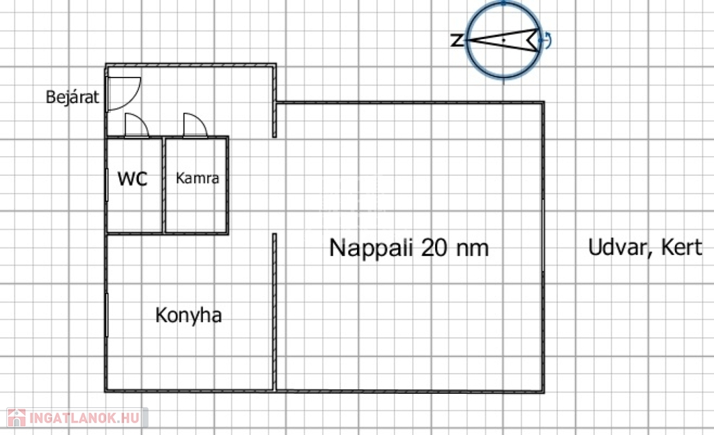 Az ingatlan 20 nm-es szobával rendelkezik, amely kertre néz.