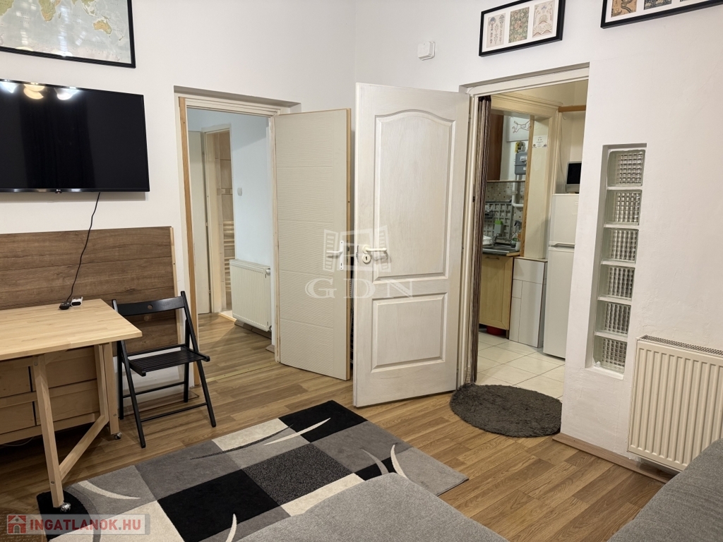 A lakás folyamatosan karbantartott, azonnal költözhető, teljes berendezéssel és gépesítéssel együtt eladó. A tulajdoni lap szerint 23 nm, a valós alapterület 33 nm. A hálószoba a korábbi lichthofból lett kialakítva, ablakos, jól használható külön szoba.