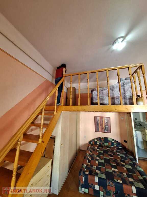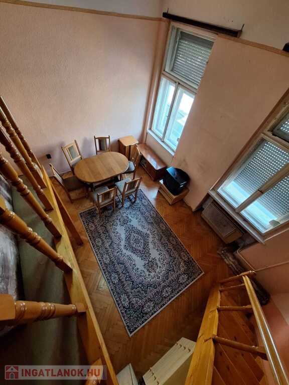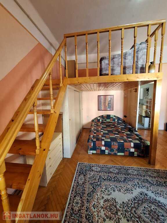 Első emeleti, utcára néző, nagy belmagasságú (3,8 m) , galériás (10 m2) , funkcionális garzonlakás, igény szerint felújítandó , tömegközlekedés egy lépésnyire .