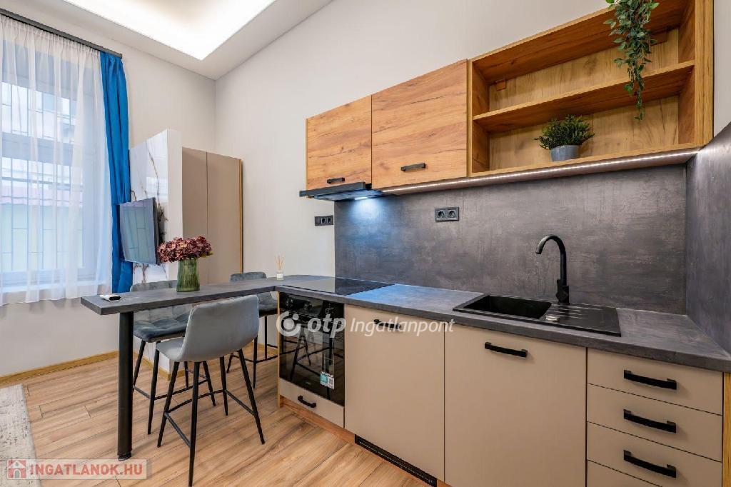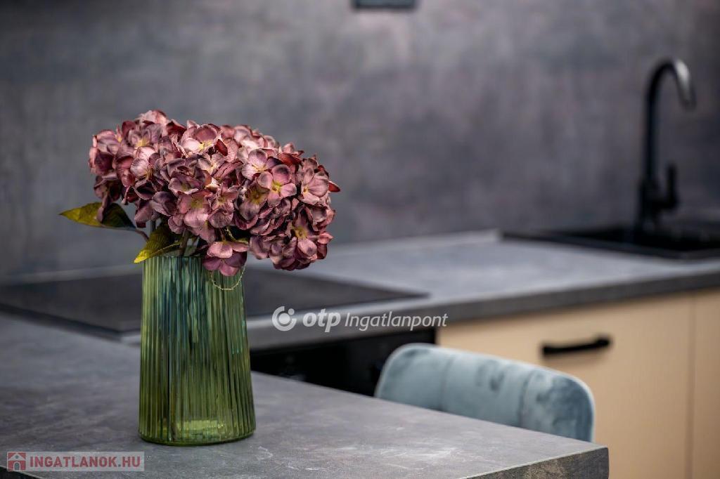 A vételár tartalmazza a gépesített konyhát és a lakás teljes berendezését, a kiegészítőkkel együtt, így akár azonnal költözhető vagy kiadható.