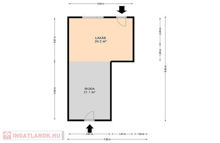Eladó Tátra utcában egy összességében 45 nm-es ingatlan, amely két helyrajzi számmal rendelkezik: egy utcáról nyíló üzlethelyiségből és egy külön kis lakásból áll, így többféle hasznosítási lehetőséget kínál. Az utcai bejáratú üzlethelyiség 21 nm-es, keleti tájolású, közvetlenül alatta egy 38 nm-es pince található, amely kiválóan alkalmas tárolásra vagy akár egyéb funkciók kialakítására. Az üzlethez tartozik egy belső udvarról megközelíthető toalett és egy kisebb tároló is. A lakás 24 nm-es, nyugati fekvésű, csendes belső udvarra néz, így nyugodt lakókörnyezetet biztosít. Az ingatlanok állapota közepes, igény szerint felújíthatók, saját elképzelésre alakíthatók. A fűtést gázkonvektor biztosítja. Az ingatlan kizárólag egyben eladó, ideális lehet vállalkozás és lakhatás kombinációjára vagy befektetési célra is. Elhelyezkedés szempontjából néhány perc sétára található a Westend és a Szent István körút. A közelben elérhető az M3-as metró, valamint a 4-6 villamos és számos buszjárat. Kérdés vagy megtekintési szándék esetén keressen bizalommal. Ügyfeleink részére díjmentes bankfüggetlen hitelügyintézést tudunk kínálni.