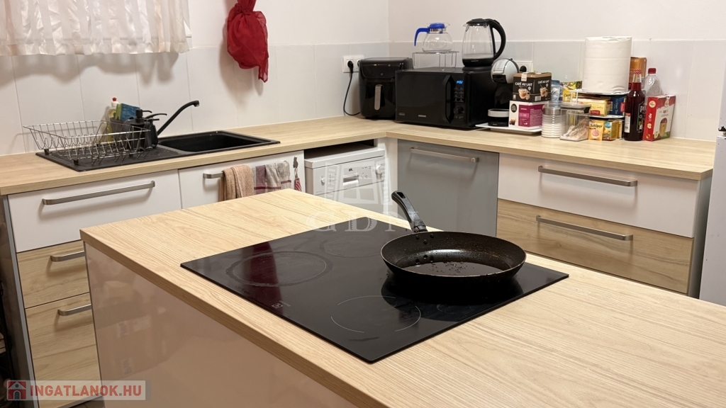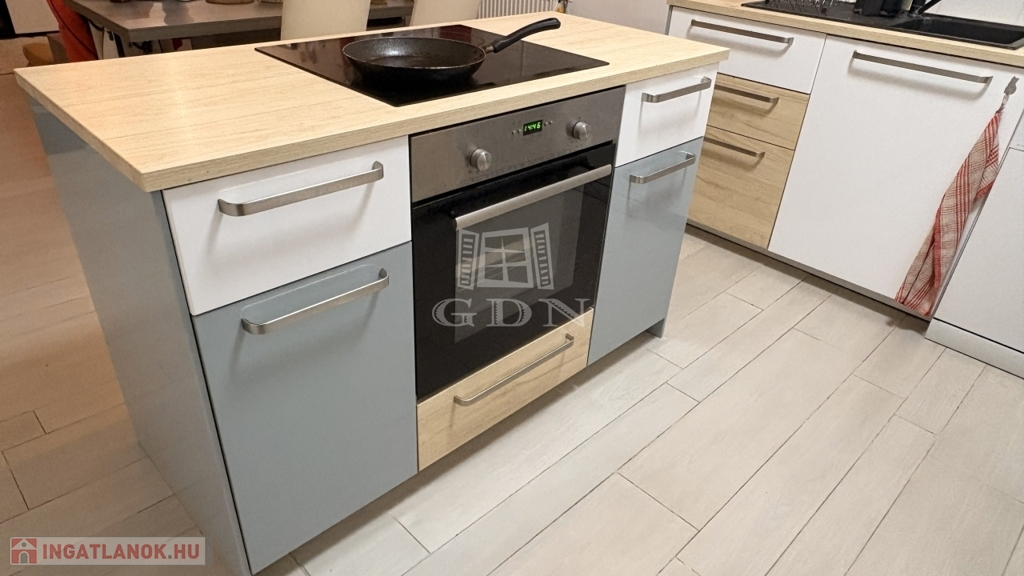 • Amerikai konyhás nappali, egy éve telepített, modern, ergonomikus konyhával