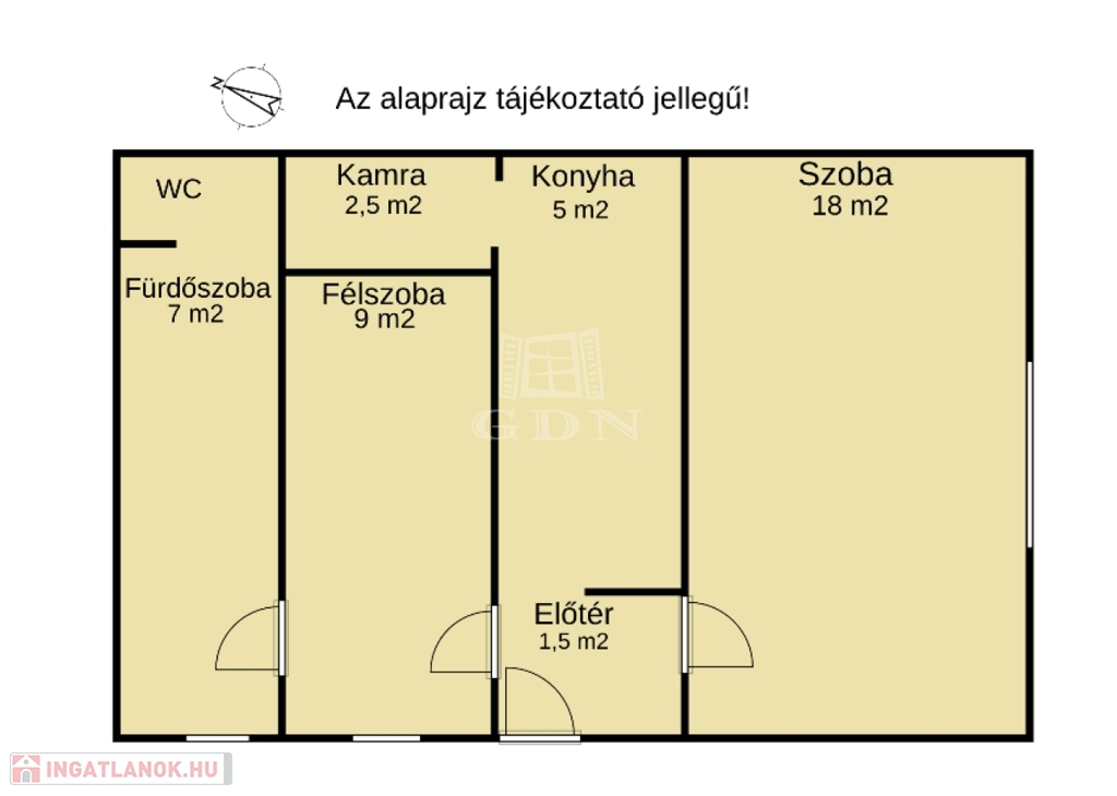 - Elosztás: 1+1 szoba