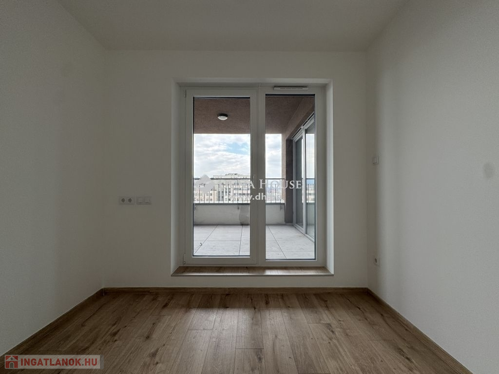 Angyalföldön!Ritka lehetőségként kínálunk eladásra A főváros egyik legnépszerűbb, gyorsan fejlődő, csendes részén, a Xlll. kerületi, közkedvelt New Palace lakóparkban, egy, újépítésű, 35 nm alapterületű, rendkívül átgondolt, jó elrendezésű, világos, terasszal rendelkező, 6. emeleti, nappali + 1 szobás, gyönyörű studio lakást.A lakás 2025 szeptemberére lesz beköltözhető. Teljeskörűen, a tervek szerint, magas minőségben megvalósítva. Az előszobából egy rövid közlekedőn érhető el az a kicsi de élhető méretű, északi irányba néző, hatalmas teraszajtónak köszönhetően, a nap legnagyobb részében szép, világos nappali, ahol helyet kapott egy kompakt konyha is. Innen nyílik a szintén északi fekvésű hálószoba is csendet és intimitást biztosítva az alváshoz. Szintén az előszobából megközelíthető egy minden komfortot kielégítő fürdőszoba is, ami Wc-vel és egy épített zuhannyal került kialakításra. A federt terasz, ami a nappaliból és a hálószobából is megközelíthető, alkalmas, grillezésre, vendégfogadásra, északi tájolásnak köszönhetően, kellemes, árnyékos, így a nyári kánikulában is rendkívül élhető. Valamennyi burkolat, prémium kategóriás. Az épületben biztonsági kamerarendszer működik. A lakás pedig távfelügyeletre alkalmas riasztórendszerrel felszerelt. A nappali és a szoba is, külön szabályozható klímarendszerrel rendelkezik. Belmagasság: 2,7 m.Az ingatlan rendkívül alacsony fenntartási költségű. Egyedi mérőórás, házközponti gázkazán, mennyezeti hűtő—fűtő rendszer gondoskodik a fűtésről és a melegvízellátásról, melynek összege rendkívül alacsony havonta, A közös költség pedig magában foglalja az összes házzal kapcsolatos egyéb költséget. A társasház rendelkezik megtakarítással, illetve, biztosítással is, a közös képviselet gondosan kezeli a ház ügyeit.A Lakópark elhelyezkedése kiváló, autóval a Váci útnak köszönhetően, bárhová gyorsan el lehet jutni, de tömegközlekedéssel is jól megközelíthető, sétatávolságra 3-as Metro Gyöngyösi utcai megállója, buszmegállók, illetve az Újpest vasútállomás. Valamint, néhány perces sétatávolságra található Duna Plaza bevásárlóközpontnak, Aldinak, Sparnak, Lidl-nek, valamint a Népsziget és a gyöngyösi sétány és újpest központjának közelsége miatt biztosított számos bevásárlási, kikapcsolódási és sportolási lehetőség. A körzetes óvoda és általános iskola szintén 10 perces sétával elérhető.Az ingatlan, új építésű, állapotát tekintve, teljesen, kifogástalan állapotú, nyár végén költözhető. Kialakítása és a lakópark által biztosított csendes, kellemes környezete miatt kitűnő választás otthonnak de akár, értékálló befektetésnek is.Az utcában, ingyenes a parkolás. Illetve a lakáshoz opcionálisan vásárolható, teremgarázs beálló épületen belül a pinceszinten.