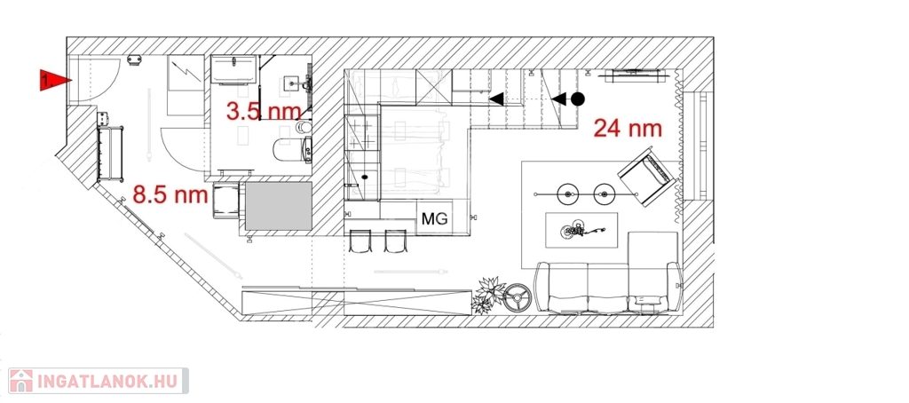 • 1. emelet, galériás kialakítás