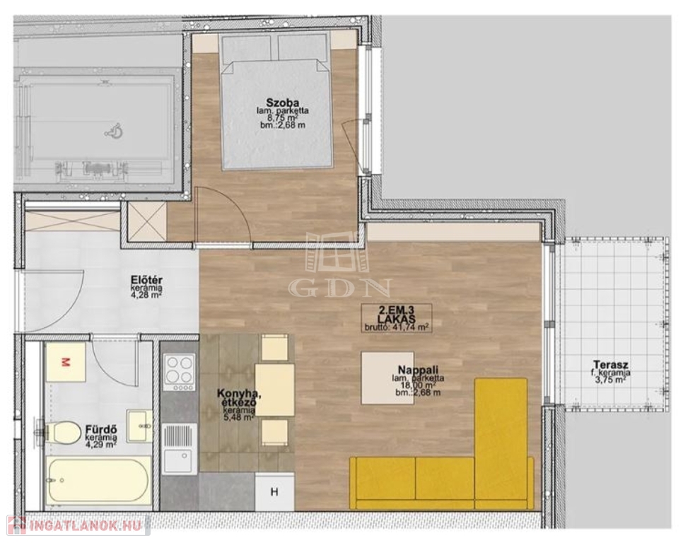 2. emelet – 41 m2 - 2 szoba – 4 m2 erkély – ELÉRHETŐ