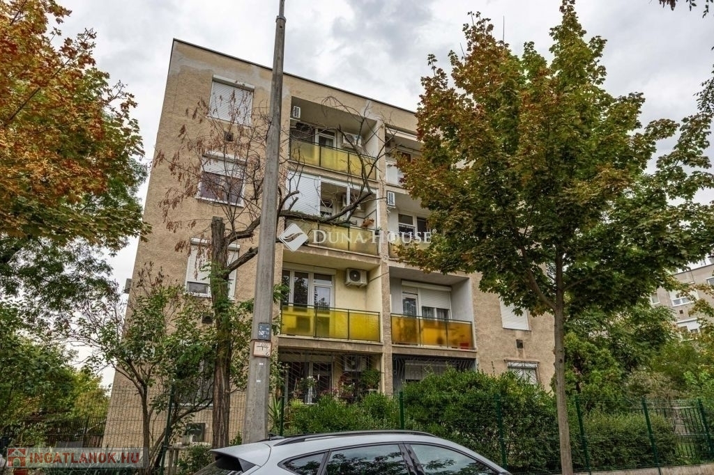 Angyalföld zöldövezeti részén, a Keszkenő utca és a Szent László út sarkán eladó egy 1. emeleti, 51 m²-es, loggiás, kelet–délkeleti tájolású, világos 2 szobás saroklakás.