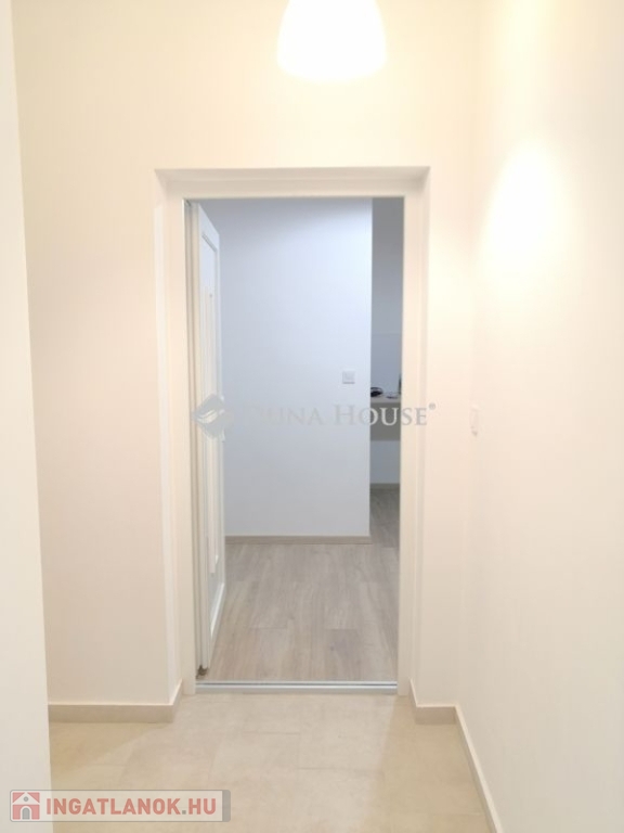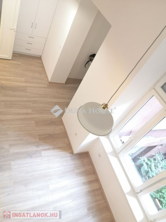 FRISSEN, TELJES KÖRBEN, BELSŐÉPÍTÉSZ TERVEI SZERINT FELÚJÍTOTT, AZONNAL BIRTOKBAVEHETŐ APARTMAN A VÍGSZÍNHÁZ KÖZVETLEN KÖZELÉBEN! XIII. kerület, Újlipótvárosban, a Vígszínháztól mindössze 80 lépésnyire, szép állapotú, egyedi hangulatú polgári társasházban eladó egy félemeleti, zöld kertre néző, kifejezetten világos, 44m2 lakóteret kínáló, nappali + hálóhelyiséges, frissen felújított, belsőépítész tervei szerint átalakított, akár azonnal birtokba vehető apartman. Az ingatlan felújítása során nagy belmagasságát helyenként extra szint kialakításával használták ki. Tágas, amerikai konyhás nappalijából ennek köszönhetően egész szobányi hálóhelyiség nyílik, a galériaszinten, ahol a belmagasság szintén lehetővé teszi, hogy normál hálóhelyiségként használjuk. A már megnevezett helyiségeken kívül tágas fürdőszoba+wc, egy egész falnyi beépített gardróbbal felszerelt előszoba, és a nappaliból nyíló étkezősarok találhatóak még a lakótérben. A bejárat előtt egy kifejezetten praktikus, zárt előtér található, ahol egy hatalmas beépített szekrény is megtalálható, kulturált, rendezett tárolási lehetőséget biztosítva az ingatlant használók számára, akár kerékpár, roller biztonságos parkolására is alkalmas. A helyiség mosókonyhaként is hasznosítható, melyhez mosógépkiállás és mosógép is telepítésre került. Állapotát tekintve az ingatlan teljesen felújított, újszerű állapotban van, a felújítás óta még senki sem használta, új tulajdonosa is ebben az állapotában veheti birtokba. A felújítás során szó szerint mindent kicseréltek a lakótérben, műszaki és esztétikai szempontból egyaránt. A felszereltséget a teljes gépesítésű (sütő, főzőlap, elszívó, mosogatókép, hűtőszekrény) konyhabútor mellett hatalmas beépített gardrób szekrények, dupla kapacitású radiátorok, hűtő-fűtő klímaberendezés, a galériaszinten kilakított beépített gardrób is emelik. A fűtést és a melegvíz ellátást elektromos cirkó biztosítja, mely szintén újonnan lett felszerelve. A nappali hatalmas ablakfelülettel rendelkezik, melynek köszönhetően kifejezetten világos. Amennyiben mégis árnyas környezetre vágyunk, a nyílászáró elektromos redőnnyel is fel lett szerelve, így az optimális fényviszony gombnyomásra beállítható. A társasház tiszta, rendezett, kívül-belül szép állapotak örvend. Számos műszaki felújítás is megvalósult az épületben. A lakóközösség kiváló, a közös területeket tisztán és rendben tartják. A környezet ellátottsága kitűnő, üzletek, oktatási intézmények, szolgáltatások, kikapcsolódási, sportolási lehetőségek karnyújtásnyira találhatóak. A Vígszínház mindössze 80 lépésnyire, a Westend bevásárlóközpont pár perc sétányira található. A tömegközlekedés szintén kitűnő, a közeli Jászai Mari térről és Nyugatiból többek között az M3 metró, a 4-6-os villamos, 2-es villamos, és számtalan autóbusz, trolijárat biztosít a város szinte minden pontjával könnyű összeköttetést. Irányár: 79,9 M Ft