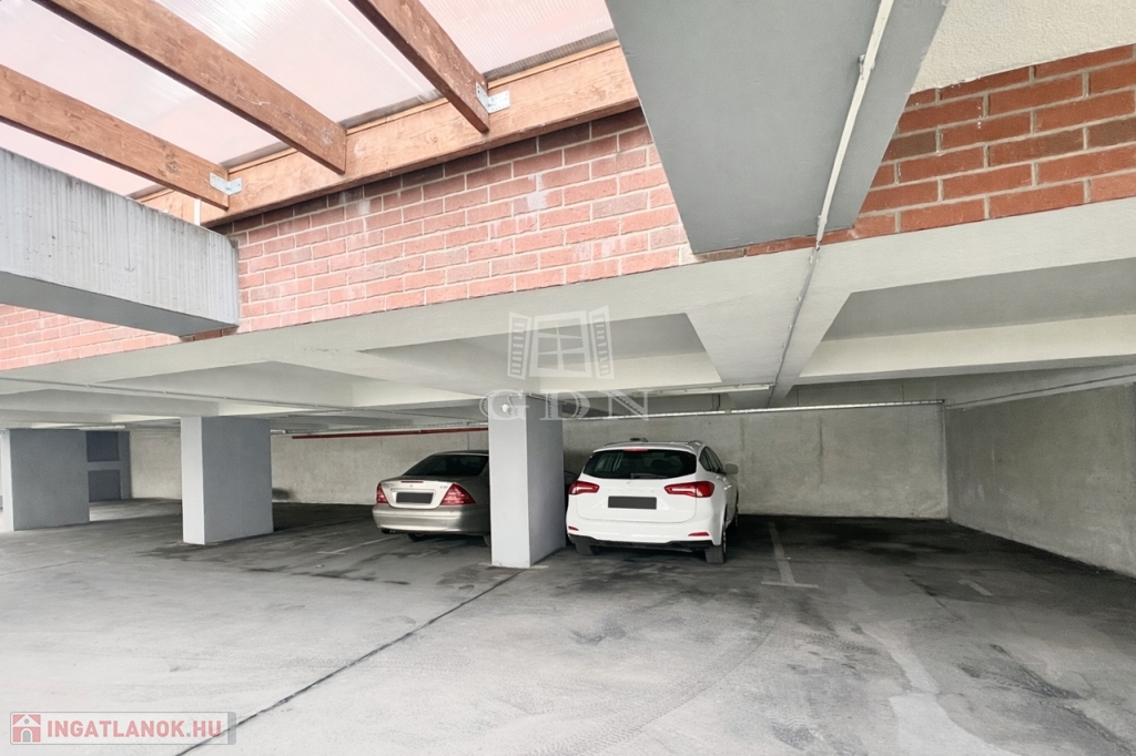 A lakáshoz tartozik egy fedett kocsibeálló a társasház földszintjén, amely elektromos kapun keresztül közelíthető meg. A garázs a lakással együtt megvásárolandó, vételára: 5.750.000 Ft.