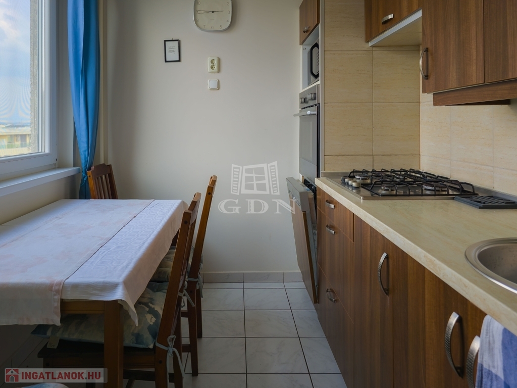 A Duna-part közelében, a közkedvelt Kárpát utcában kínálunk eladásra egy 10. emeleti, panorámás, 2 szobás, jó állapotú lakást.