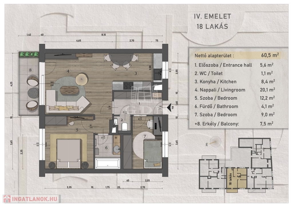 • Magas hozamú befektetés: keresett lokáció, erős bérleti piac