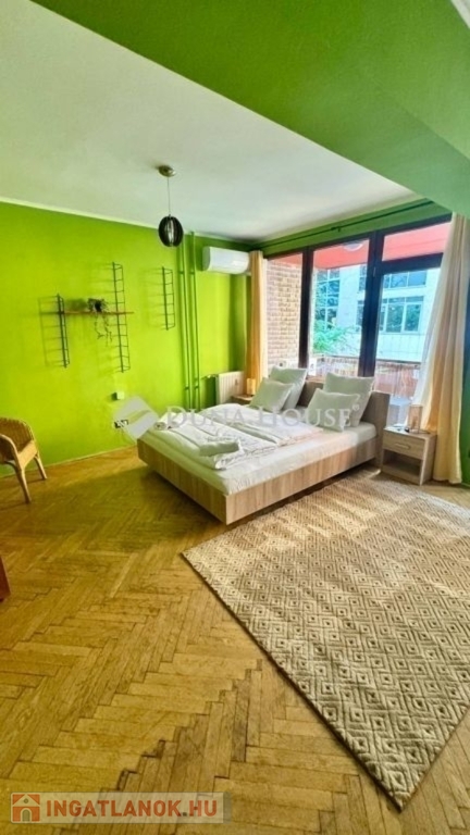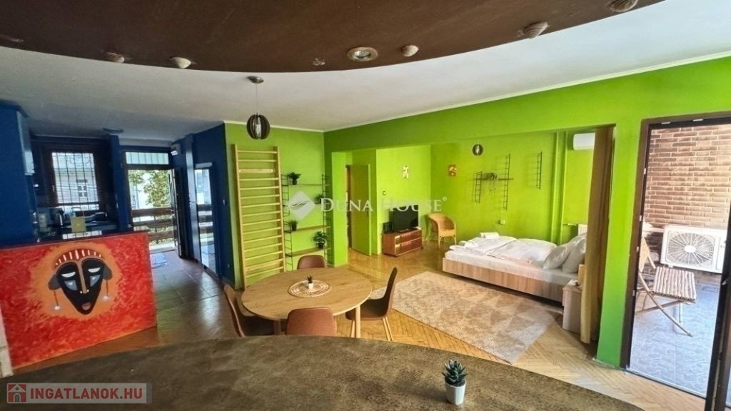 egy 63m2-es, déli fekvésű, nagyrészt csendes közre néző, napfényben úszó, tágas terekkel rendelkező, 1. emeleti lakás. 2017-ben volt felújítva, ekkor ki lettek cserélve a külső nyílászárók, és teljes villanyvezeték rendszer. Egy festés, és némi esztétikai felújítás után költözhető állapotú. Jelenlegi beosztását tekintve, egy nagy nappalival és egy hálóval rendelkezik, de könnyedén kialakítható még egy háló, ahogy eredetileg volt. Akár rendelőnek vagy irodának is kifejezetten alkalmas.