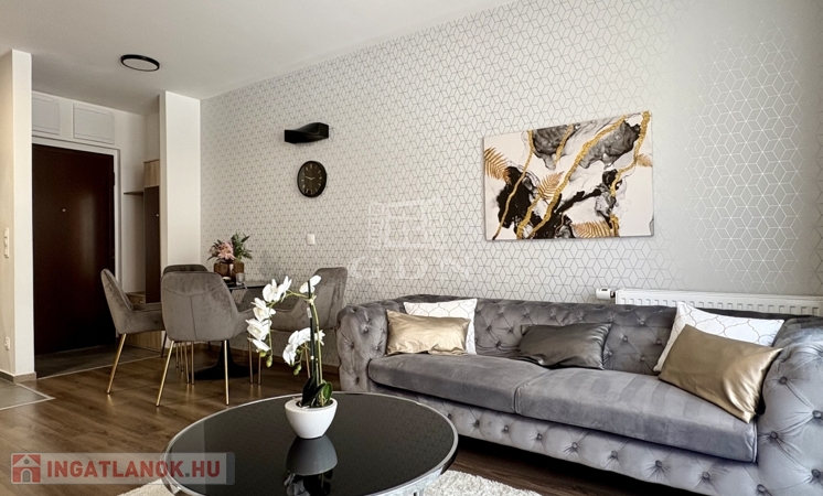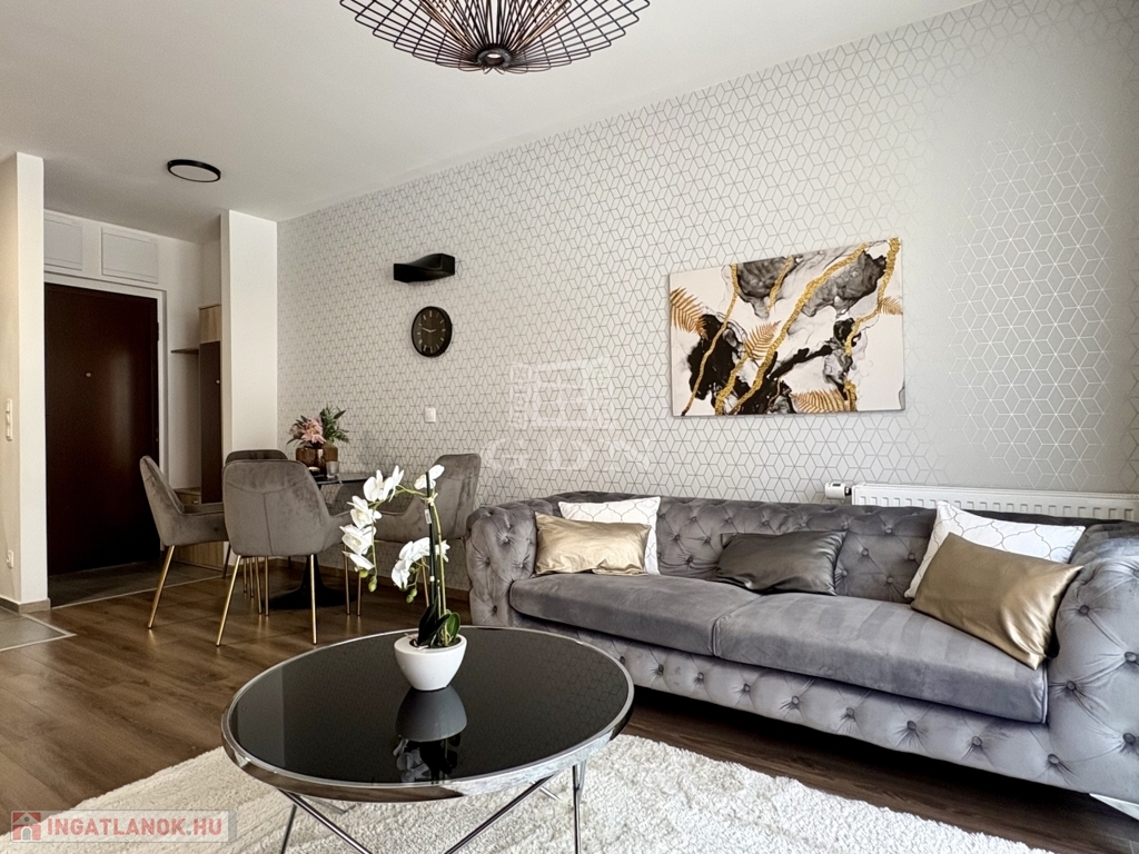 Az ingatlan prémium minőségben bútorozott és gépesített (AEG, Whirlpool, Gorenje gépekkel), okosotthon rendszerrel, elektromos redőnyökkel és hűtő-fűtő klímával felszerelt. Tehermentes, azonnal költözhető!