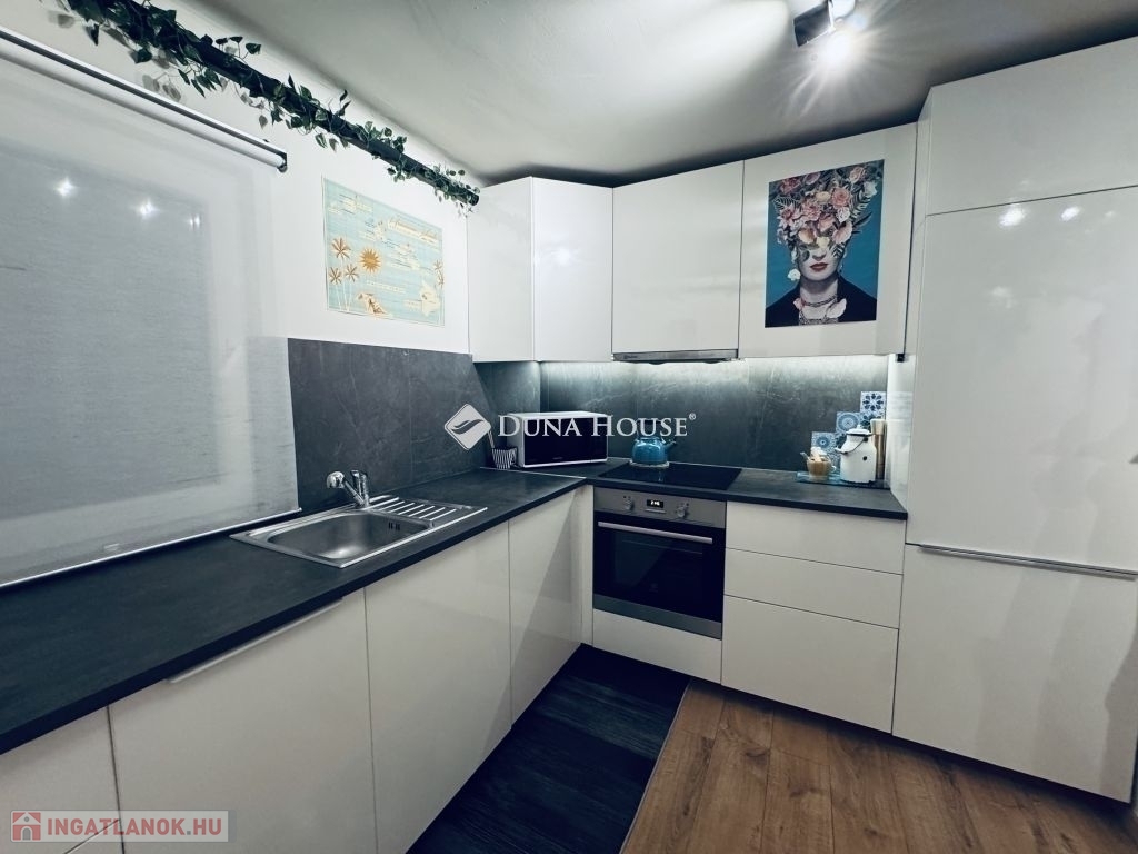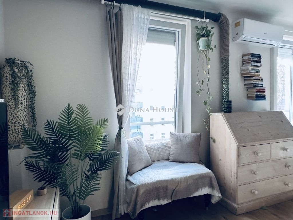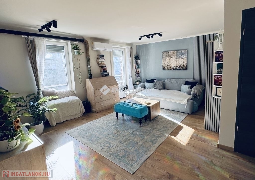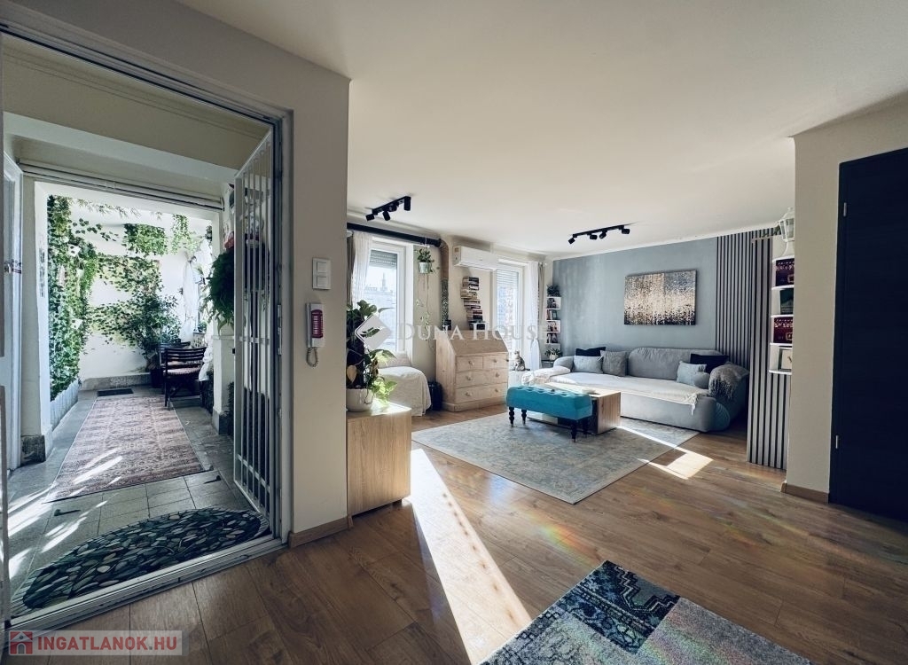 PRIVÁT SZFÉRA a városban!Hat emeletes ház legfelső szintjén egyedül tündököl ez a mini loft.A ház teljes tetőrendszere 2024-ben lett felújítva. Ez nem csak minden háznál fontos, de a tető alatt lakóknak elengedhetetlen!A lakásnak saját Wifi kapcsolatos, mozgásérzékelő lámpával, mikrofonnal és automata éjjellátó rendszerrel felszerelt kamerája van a bejárati ajtónál (+ rácsos ajtó). Azon felül a ház is kamerákkal rendelkezik a lakók biztonságát őrizve.Két szoba, két fürdőszoba + külön wc és gardróbszoba.Könnyen három szobássá alakítható.Hűtő-fűtő klíma, okosbojler, majdnem földig érő szúnyoghálós, redőnyös ablakok.Szembeszomszédok távcső távolságra vannak, így garantált a privát élet és egész évben a természetes napfény.A mini loft emeleten az egész felvezető lépcső, illetve a zárt közlekedő (télikert) a társasház szabályainak megfelelve alakítható. Jelen esetben (videón látható) elszabadult a varázspálca, de bármikor vissza lehet térni a letisztult állapotához.A lift az ötödik emeletig visz, utána saját lépcsőn egy emeletet kell menni.Az ingatlanba besétálva egy nagy loftszerű térben találja magát az ember, ami különleges egy 54nm-es lakásnál. Ez magában foglalja a konyhát, előszobát, gardróbszobát és nappalit. A térnek a nappali részéből (balra) nyílik az egyik fürdőszoba és a külön WC is. A konyha részéből (jobbra) nyílik a gardróbszoba és hálószoba külön fürdőszobával.A modern minimalista konyha letisztult megjelenése a fogantyú nélküli szekrények és beépített gépeknek köszönhető, úgy mint sütő, mosogatógép, hűtőszekrény, fagyasztó és szagelszívó.Újlipótváros magáért beszél. Aki itt keres az tudja.Nem kell messze menni! Már az utcában, illetve egy zebrán áthaladva található minden!Westend City Center, mozi, kávézó, étterem, biliárd, edzőterem, jégkorcsolyapálya, szabadulószobák, esti szórakozóhelyek, sportolásra számtalan lehetőség!Minden ami a szokásos felsorolás: ovi, suli, doki, patika, játszótér stb.A listán felül: Vígszínház, Margitsziget, Szent István park, Lehel téri piac, Budapest Jazz club, VR park, Flippermúzeum.A lokáció kitűnő, (M3-as) metró (Lehel tér és Nyugati pályaudvar), (4-6-os) villamos, (73-as), (76-os) troli, (15-ös) busz, (91, 191, 291) és számos éjszakai buszjárat karnyújtásnyira.