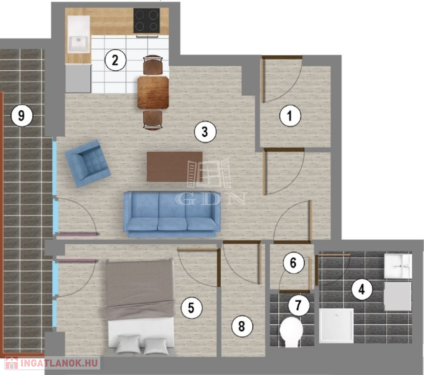 • Fsz.: 1 db lakás, garázs (5 db), tárolók (4 db), kukatároló